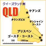クイーンズランド州(別 名:サンシャイン・ステート)は、ビーチやアイランド・リゾート、そして2000キロ以上にわたる珊瑚礁 が続くグレートバリアリーフ等、国際的に有名な観光スポットやリゾート地が多くあります。クイーンズランド州には、ブリスベン、ケアンズ、タウンズビルの三ヶ所に国際空港があります。「クイーンズランド」という州名は、1859年にニュー・サウス・ウェールズから分離した当時の統治君主であるクイーン・ヴィクトリアから名付けられました。 ●HOW TO 学校選び ロケーション詳細 QLD州 へ
